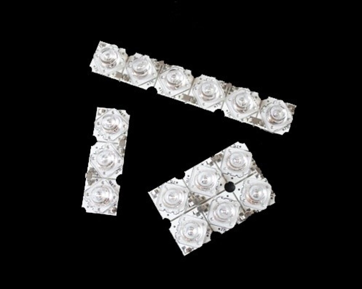 The Smart Light Engine consists of a module with 36 High Power Z5x LEDs from Seoul Semiconductor. It’s been engineered to provide customers with the flexibility to select the optimal light source for the applications. Customers can choose the module light source by selecting the Z5x LEDs from Seoul Semiconductor and the FLT/FMT/F360 optics families from Fraen Corporation to best suit their needs. Each 36 LEDs module can be divided in different shapes (Linear, Square, Rectangular) properly cutting the SMT jumpers to better fit the application.
